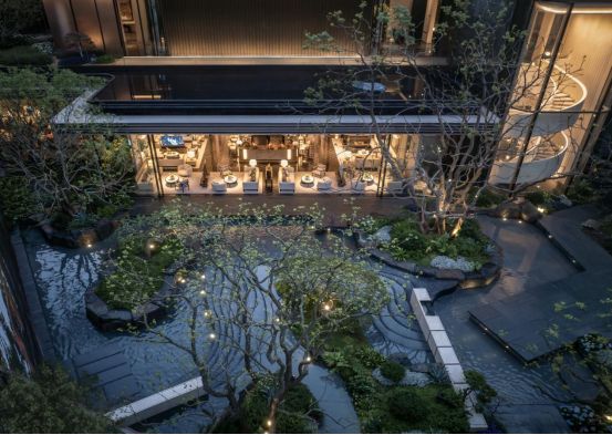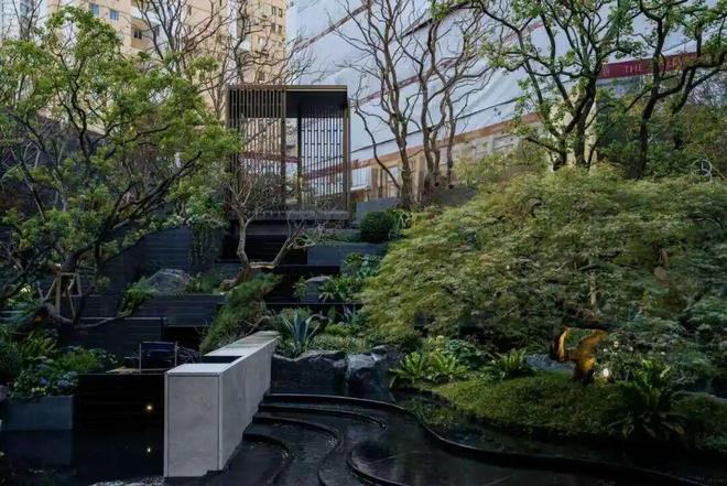 下,是业主独处的阅读角,枝叶与流水动静相宜,勾勒出红叶胜花的静谧时光③谷中藏意,出入皆景
