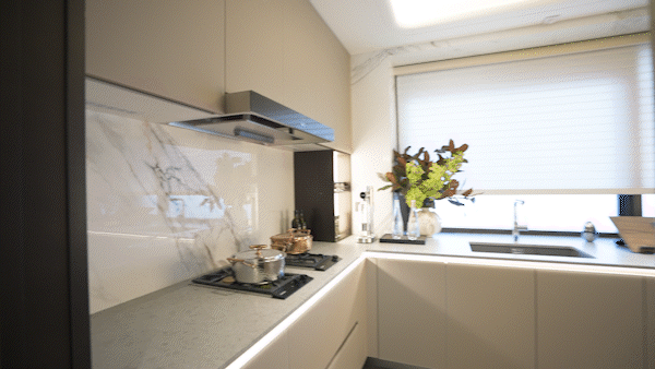 搭配威乃达的顶级橱柜、怡口直饮、弗兰卡的水槽及龙头、夹丝玻璃的移门,这里不再是传统的劳作空间,而是享受生活的中心!