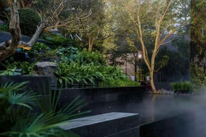 叠级水瀑:水瀑旁,原生进口的日本赤羽枫以珍稀乔木之姿伫立,四季皆为家庭漫步演绎着不同的色彩诗篇· 玉扣绿岛:绿岛以独山璞玉为名,浮翠于碧波之上,成为孩子探索自然、业主漫步私语的家庭乐园