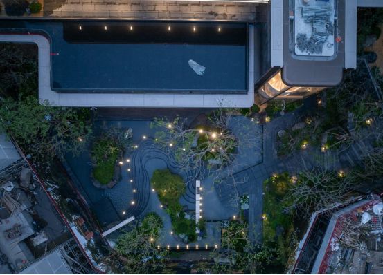 :在加州灰皮革面奢石打造的观景台上,与入口处那株百年冬青静静对望,在此放空,感受生命的厚度与自然的滋养