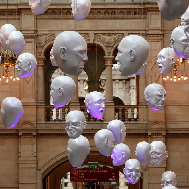 坐落在格拉斯哥大学对面的凯文葛罗夫艺术博物馆,是除了大英博物馆之外,英国参观人数最多的博物馆,可谓十分热门。博物馆坐落在一座宏伟的红色的西班牙巴洛克风格的建筑中,华美的内部装饰着实让人震撼。进入馆内,顶部悬挂着由艺术家Sophie Cave创造的装置艺术《浮头》,总能给初次见到的人留下深刻的印象。