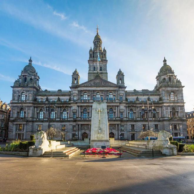 乔治广场是格拉斯哥名副其实的城市中心,一年到头都有许多活动,包括精彩的Piping Live! Festival,这是世界上最大的风笛音乐节。每到圣诞节,热热闹闹的Glasgow Loves Christmas活动可千万不要错过。