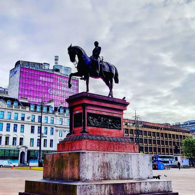 如果你从爱丁堡来到格拉斯哥,第一个到达的地方很可能就是乔治广场。这里是苏格兰最重要的城市广场之一,以国王乔治三世命名。广场上建有一些重要的雕像和纪念碑值得你细细欣赏,例如维多利亚女王、创作了《友谊地久天长》的诗人罗伯特·伯恩斯和改良了蒸汽机的瓦特等诸多苏格兰名人。
