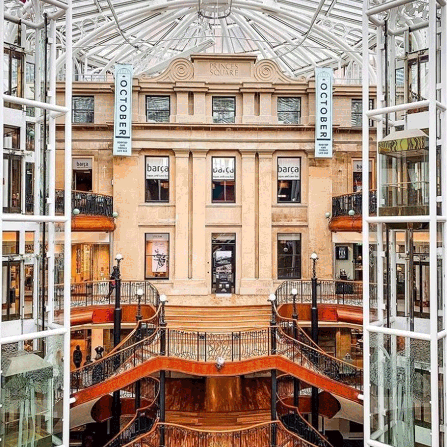 喜欢逛高大上商场的小伙伴们,不要错过格拉斯哥的王子广场。商场位于布坎南街上一栋优雅复古又不失时尚的19世纪建筑里,从内部风格看上去奢华感满满。在这里,可以购买到许多世界知名品牌,如Vivienne Westwood、Jo Malone、Belstaff 和 Kurt Geiger 等等。