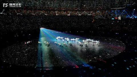 在闭幕式上,主创团队用光艺科技手段创造出奇幻浪漫的夜光森林,再一次形成全沉浸式体育场观演体验。