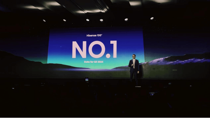 在国内,奥维云网数据显示,2024年全年海信在百英寸及以上电视市场的销量和销售额占比分别为40.16%和 45.79%,继续领跑行业。在国外,Omdia数据显示,2024年第三季度,海信系电视100英寸电视全球出货量份额达63.4%,连续四个季度位居首位。也就是说,全球每售出两台百吋电视,其中就有一台是海信电视。海信之所以在百吋电视上取得出货量和市场份额的领先,离不开对技术的深耕。