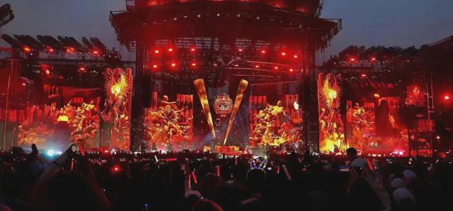 现场,龙腾系列LED透明屏以超高清画质,将复杂多变的舞台背景呈现得淋漓尽致,与周杰伦动感十足的音乐节奏紧密配合。荧光棒闪烁的星光、巨幕上流动的光影与现场表演交相辉映,营造出既现代又魔幻的舞台氛围,让歌迷们仿佛置身于梦幻的音乐世界,享受前所未有的视听冲击。