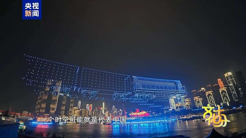 由近3000架无人机组成的火车头划过重庆的夜空,结合AR技术生成的时空隧道,仿佛一辆穿越时空的列车缓缓驶来。