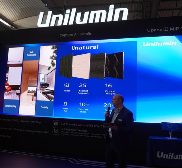 该系列产品通过采用公司自主开发的巨量转移方法和扇出封装架构,产品的光电性能得到大幅提升,具有高亮度、高对比度、低功耗、防磕碰能力强等优势,覆盖P0.6-P1.5点间距,可满足安防应用、高端租赁、商业显示、中大型会议室、虚拟拍摄、高端电视、高清电影屏等场景的超高清显示需求。其中,公司全新展出的MIP显示面板,更是进一步拓宽MIP技术应用场景,为微间距显示注入创新活力。