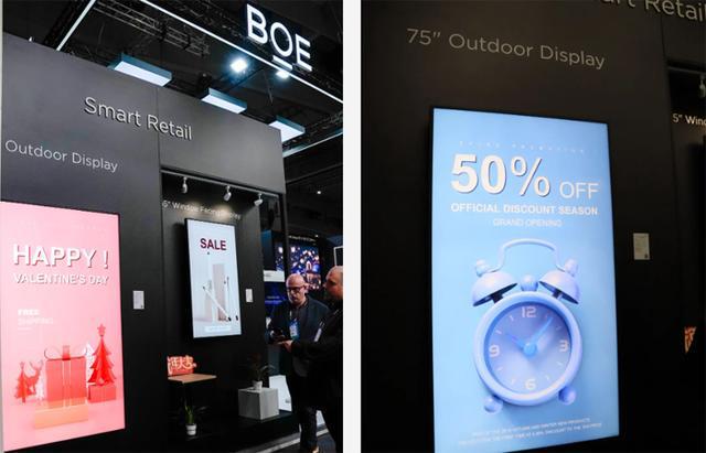 在智慧零售领域,京东方带来了采用全铝材质并融合专业涵道设计的BYB广告屏,可实现万级高亮,即使在强光照射下,画面依然清晰可辨。与传统产品相比,BYB能够实现30%至50%的能耗节省,大幅度降低运行成本。IP66级别的防护等级,具备卓越的防尘、防暴雨、防台风及耐盐雾能力,不仅应用于商超零售场景,更在户外广告、城市公共信息展示等领域拥有广泛应用场景。京东方还展示包括55英寸橱窗标牌、覆盖32至86英寸的全尺寸数字标牌、31.5英寸彩色墨水屏等一系列创新显示产品,凭借轻薄设计和低功耗特性,引领行业向绿色、环保方向发展。