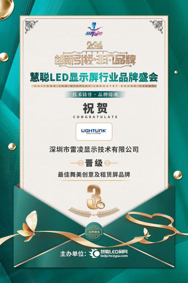 此次荣获慧聪LED屏显行业“最佳舞美创意及租赁屏品牌”,是对雷凌显示过去一年辛勤努力与不懈追求的高度肯定。在技术研发、产品创新、市场拓展和客户服务等多个方面的卓越表现,让雷凌显示在竞争激烈的LED行业中脱颖而出。