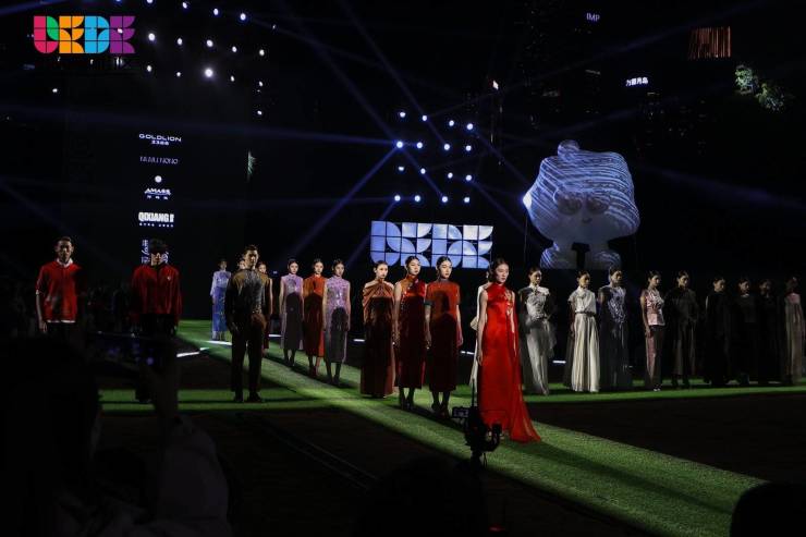 本次时尚盛典携手XUS、香云故里、金利来、ARIADNE(瑞典)、阿玛施、慧霞旗袍、NUNU NONO、JIWENBO等多个时尚品牌,分为“非遗新生”“粤彩世界”“囍迎新章”三大篇章,为现场观众展出多款时尚服饰首发新品。