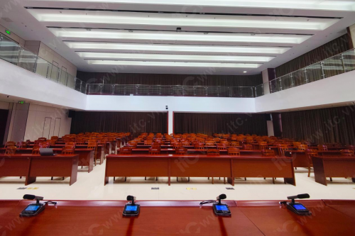 此外,文化宫会议厅主席台前,每坐席均配置itc数字会议发言单元,美观精致、高端大气,内置镀金振膜超心型指向性电容式咪芯,具备广播级高清音质,抗信号干扰能力强,可实现超远距离拾音。系统还集成投票表决、会议签到、会议服务及会议讨论等多种会议功能,可轻松进行会议现场管控,提高工人文化宫开会效率和质量。