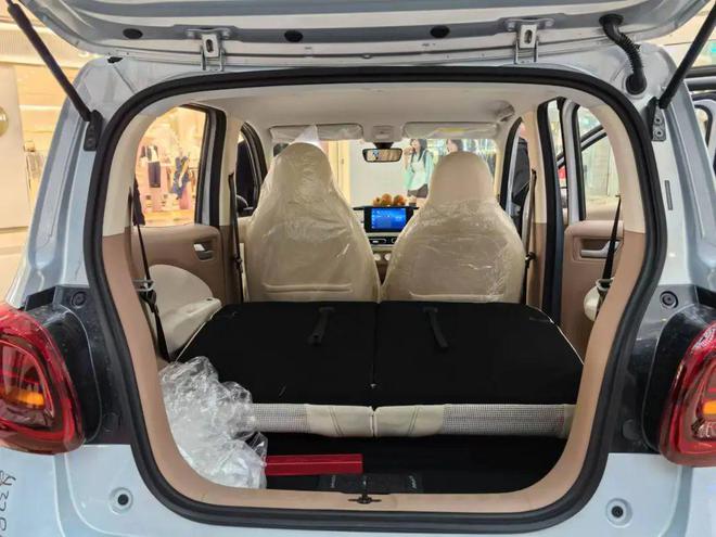 四门版车型的后备箱基础容积为123L ,比两门版有了很大提升,日常购物、出行放几个行李箱都绰绰有余。当后排座椅支持5/5 比例放倒后,后备箱容积可拓展至745L。此外,四门版车内拥有多达 19 处储物空间 ,包括门板储物格、储物网格、杯托以及挂钩等,极大地满足了用户多样化的储物需求。