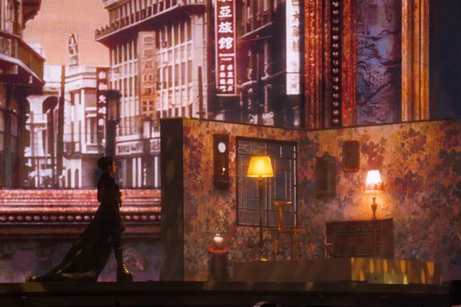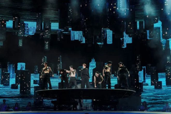 除了旋转舞台,整个舞台的布局也十分精妙。舞台的层次感丰富,不同高度的平台和错落有致的道具摆放,为林忆莲的表演提供了多样的空间。与此同时,舞台表面覆盖高透光亚克力材质,结合动态投影技术,实现裸眼3D效果。