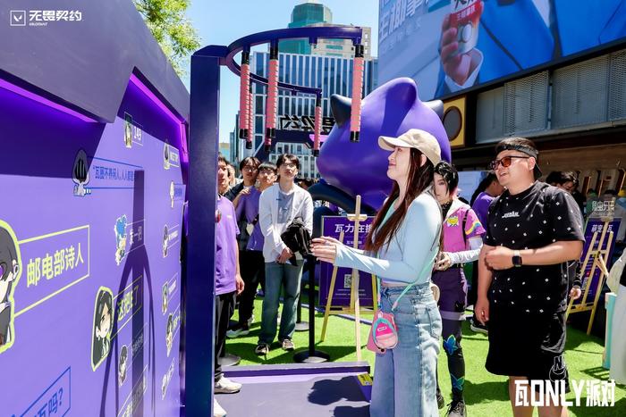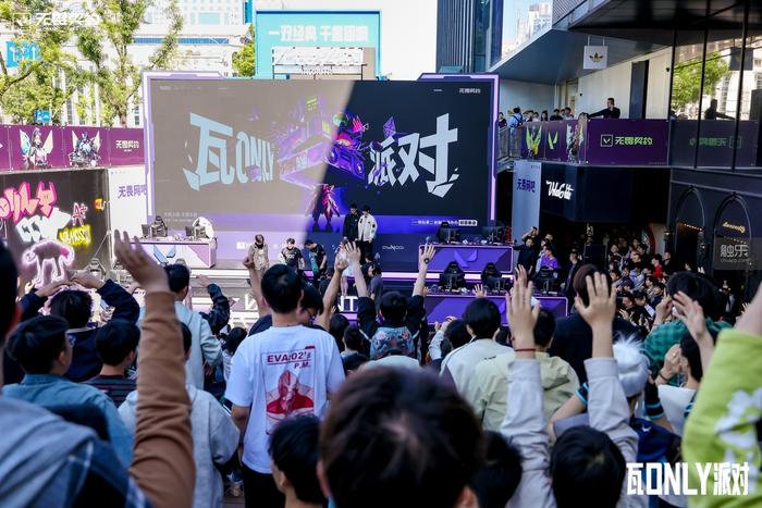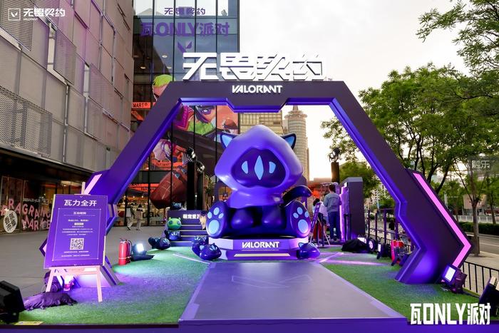 这是五一假期期间,《无畏契约》在北京举办的线下“瓦ONLY派对”现场。官方将这场活动定义为:“一场所有‘瓦’玩家二创脑洞爆炸的线天在此地的亲身感受和观察,这更像是一场《无畏契约》与玩家双向奔赴的“约会”。