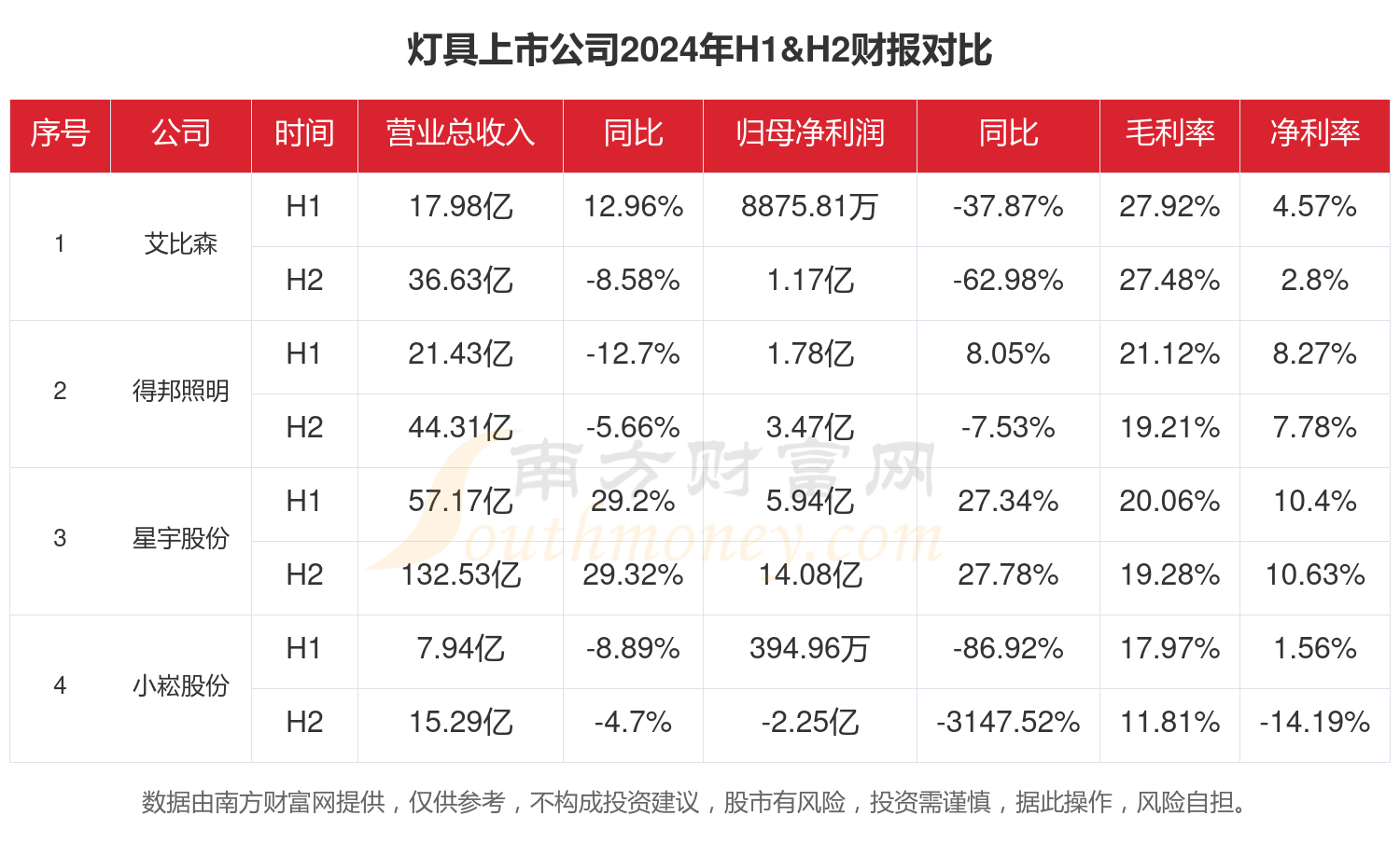 根据南方财富网概念查询工具数据统计,A股14家灯具相关上市公司已发布2024年全年财报。2024年全年大家都过得怎么样?一起来看看吧。