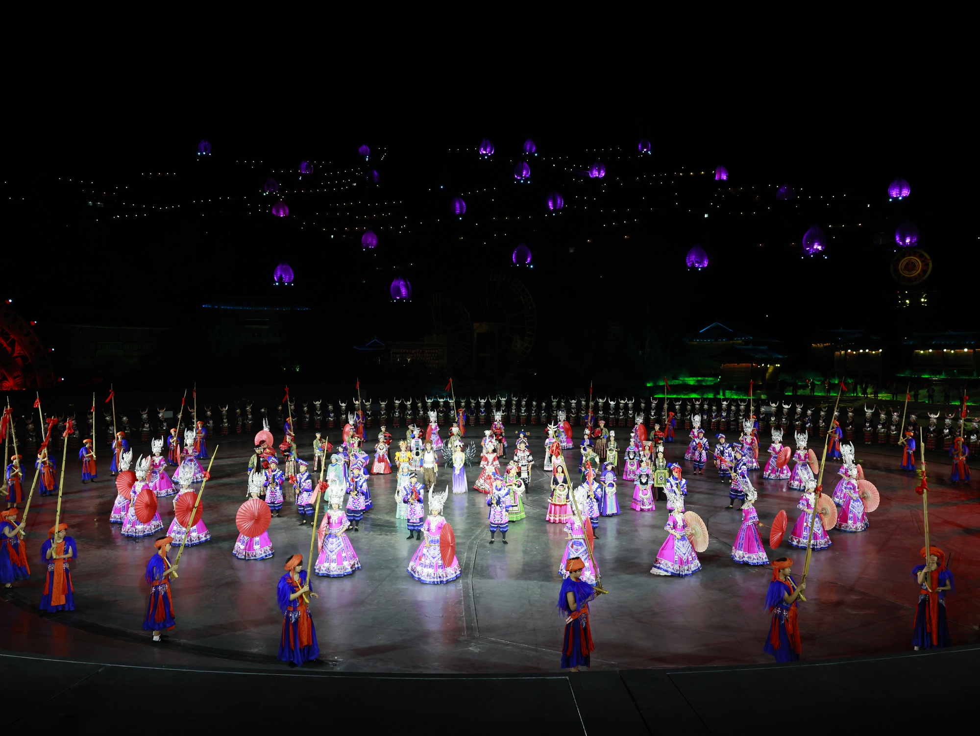 “在这古今融合的剧场内外,有来自周边村寨的420余名群众通过舞台实现了就业。当铜鼓舞的鼓点和芦笙舞的笙曲与《仰欧桑》完美融合,千年技艺在新时代绽放新的光辉。从旁观者到参与者到传承者,这场蜕变见证着文化根脉的自觉赓续,当老祖宗的智慧化作精神底气,‘文化风’带动‘文明风’,文化的软实力便成了触手可及的幸福。”雷山县文明办刘玲芳介绍。