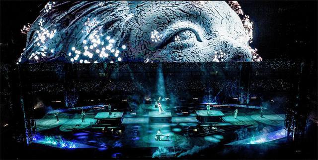 此次火星演唱会青岛站,延用火星四面台形式,赛博朋克风舞美构成了一个充满未来感和科技感的奇幻空间。让每一位观众都能获得全视角的沉浸式体验。舞美设计上,为了与中西音乐相适配,采用了东西方视觉风格变换的方式来呈现。火星演唱会的舞台、灯光与舞美交相辉映,变换出山川云海、珠影帘光、蝴蝶群舞、赛博星际等东西方意境交融的绝美图景。