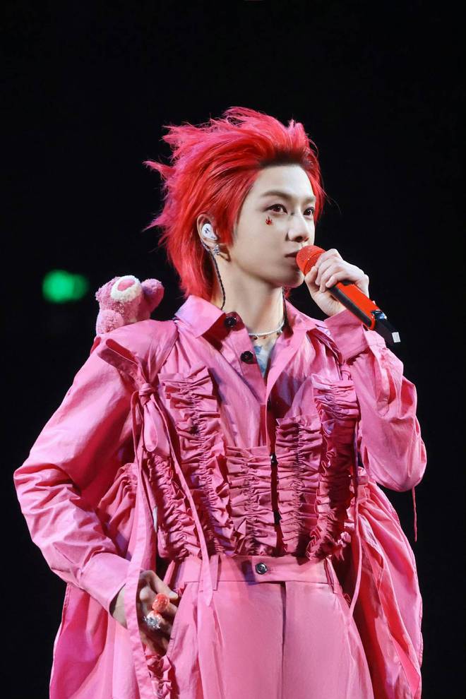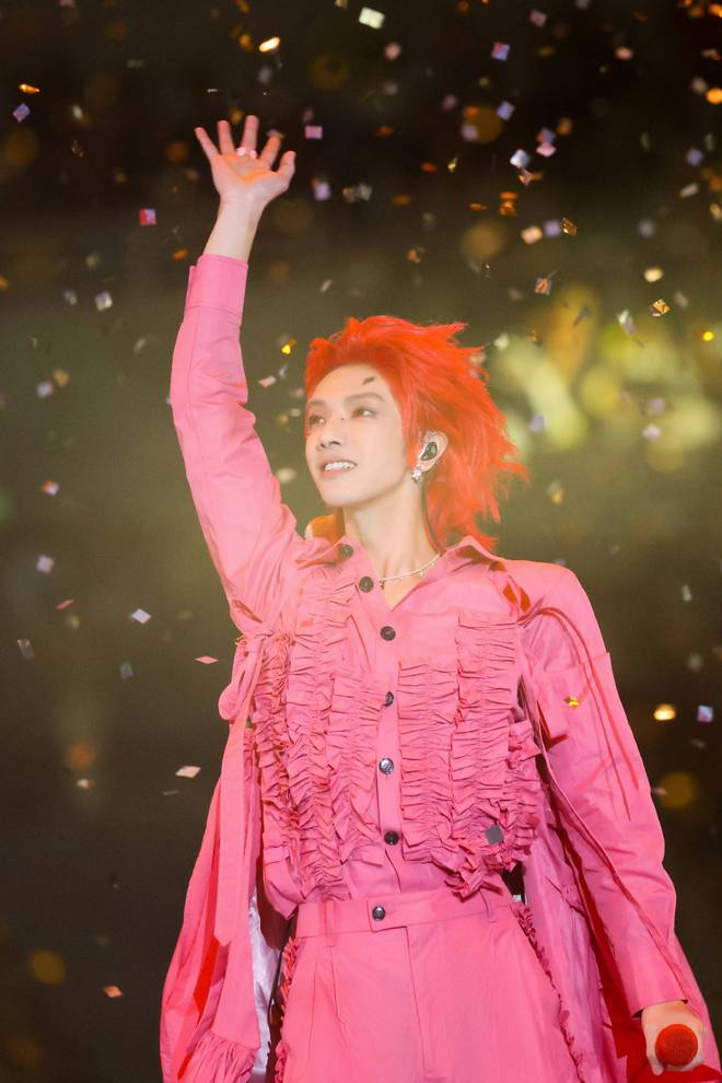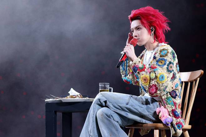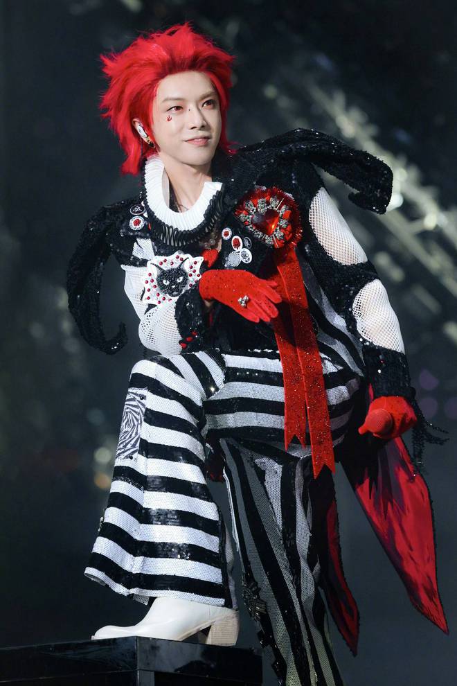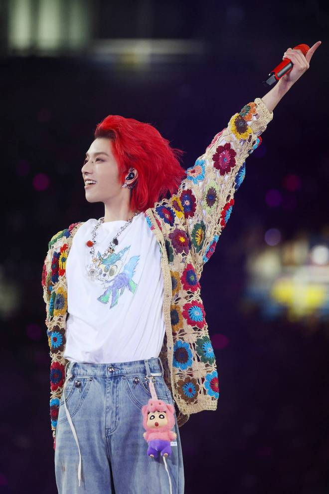 演唱会现场,华晨宇用精心编排的歌单串联起时光的脉络,既有经典曲目,也有今年一月上线的第六张个人专辑《量变临界点》中新作的呈现,每一首都如同璀璨星辰,在音乐的宇宙中闪耀独特光芒。华晨宇红发赤瞳,身着挂满“火星”元素的黑白条纹装登场,他肩头一双灵动的牛角形装饰为整套造型增添了更多活泼感,一举一动间仿佛变身个性张扬的小恶魔。开场曲《虚幻与现实》以极具冲击力的摇滚节奏点燃全场,华晨宇充满爆发力的嗓音如同利刃,划破寂静夜空,音乐狂欢瞬间开启。他以精湛的演唱功力将摇滚组曲《我管你》《拆弹专家》《黑白艺术家》《斗牛》《永不熄灭的火焰》一一呈现,并跟随摇滚节奏律动,展现出非凡的舞台掌控力,贡献了令人难忘的高光名场面。