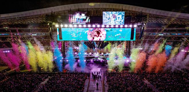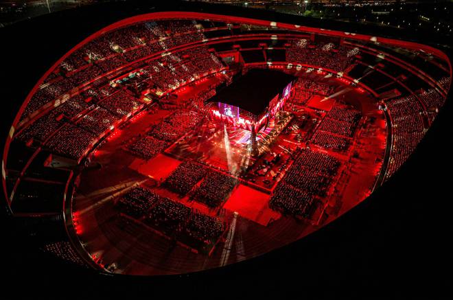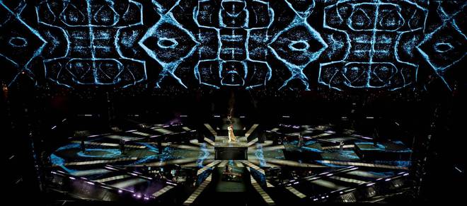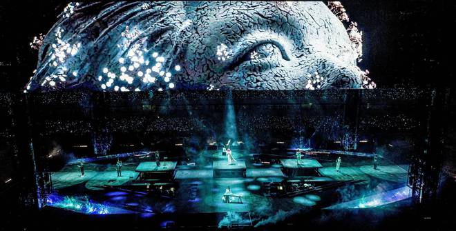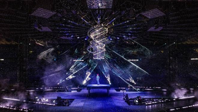 此次火星演唱会青岛站,延用火星四面台形式,赛博朋克风舞美构成了一个充满未来感和科技感的奇幻空间。让每一位观众都能获得全视角的沉浸式体验。舞美设计上,为了与中西音乐相适配,采用了东西方视觉风格变换的方式来呈现。火星演唱会的舞台、灯光与舞美交相辉映,变换出山川云海、珠影帘光、蝴蝶群舞、赛博星际等东西方意境交融的绝美图景。