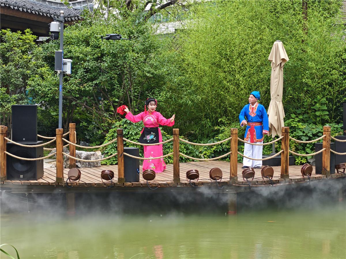 自今年5月开园以来,五亩园运营方便与民间黄梅戏艺人携手,将园林景致与戏曲艺术巧妙融合,打造沉浸式演出体验。游客漫步其中,既能欣赏江南园林的诗意,又能感受黄梅戏的独特韵味。