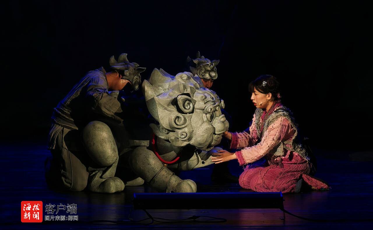 (椰网/海拔新闻记者 张艺)8月23日晚,由中共海南省委宣传部指导,海南省演艺集团主办的多媒体舞台剧《嗨!小石狮》在海南省歌舞剧院精彩上演。该剧由中国福利会儿童艺术剧院出品,根据儿童文学作家杨紫汐的小说《夜明桥上的小石狮》改编,以中华传统文化图腾“石狮”为主角,通过奇幻的舞台呈现,讲述了一段关于守护与成长的动人故事。