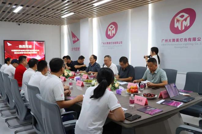 大舞美灯光董事长闫占清、工程总监王世民、研发总监曾庆平、生产总监黎观伙、结构主管刘传臻、电子主管陈强、董助毕伟思等公司高层对专家调研组进行了热情接待。