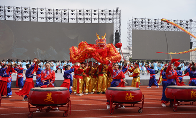 各县区方阵入场演出的同时,现场的评委们也忙碌起来,给每个代表团打分。现场以及屏幕前观看直播的观众,也可扫大屏幕上的二维码进入打分小程序,为心仪的节目打分,进一步增强了开幕式演出的互动性。