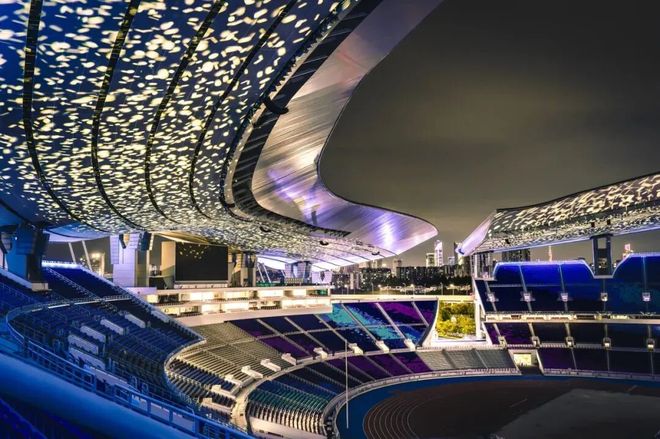 此外,豪尔赛在广东奥体中心的灯光演绎还兼顾场景营造与文化表达,馆内通过投影技术营造出繁星点点的梦幻意境,与室外“新飘带”的光影遥相呼应,点缀岭南文化特有的灵动色彩,让广东奥体中心成为承载湾区活力与文脉记忆的夜间新地标。
