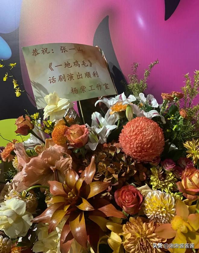 因为工作关系杨紫没能到场,但是送去了花篮。而且,杨紫的爸爸去看了,而且在台下和张一山拥抱祝贺。