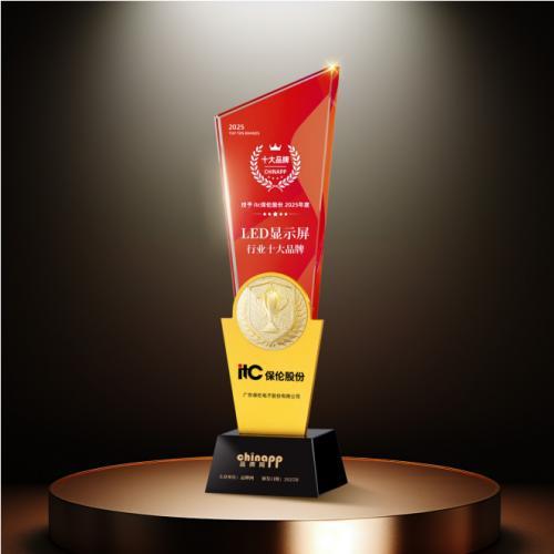 品牌网的“年度品牌评选”活动,是行业影响力最高的品牌榜单之一。本次评选历时三个月,从产品创新力、市场占有率、客户满意度、品牌知名度等多个维度,汇聚行业专家及用户投票的多重评审,最终揭晓结果。itc保伦股份此次荣获“2025年LED显示屏十大品牌”奖项,不仅是对itc多年来技术实力的肯定,更是对公司品牌价值的高度认可。