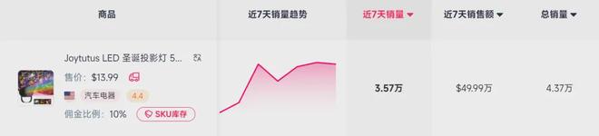 根据后台数据,该款LED圣诞雪花投影灯,在上架后的一个月,销量不佳,但自TikTok美区黑五开启以来,就呈现出明显的销量增长趋势,更是在近日出现陡增势头。