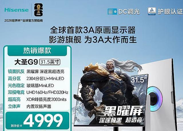 3月21日海信全新发布大圣G9显示器。这是海信与《黑神话:悟空》联名款产品,也是海信高端电竞显示器的代表产品。其拥有2304 AM主动驱动逐点控光技术,在表现HDR画质细节上媲美OLED产品,且2000nits峰值亮度,比OLED亮度更高、成本更低。海信G9拥有27和31.5两个尺寸,满足主流玩家需求。海信G9也是沃格光电玻璃基板Mini LED产品,首次在IT市场量产型号上大规模应用。