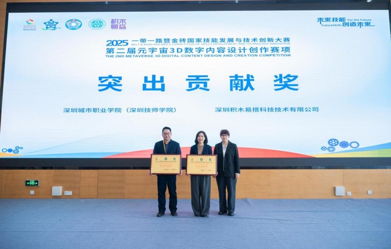 大赛的圆满举办,离不开背后辛苦付出的赛事承办、支持单位,本次大赛中,深圳城市职业学院、深圳积木易搭科技技术有限公司荣获突出贡献奖。