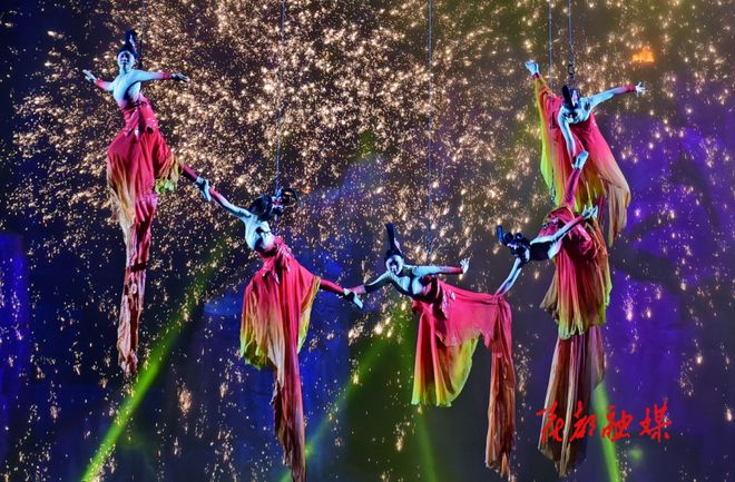 值得一提的是,节目中的铁花表演堪称华南地区最具规模的山体打铁花表演。为了呈现这一壮观场景,主创团队特别搭建了一座超过12层楼高的山体舞美,十多处点位同时击打出壮丽铁花。表演到高潮处,铁花绽放,光影交错,如星河倒悬;低沉处,星星点点,婉约柔美,撩人心弦。收放之间,火树银花落,万点星辰开,令人叹为观止,过目难忘。