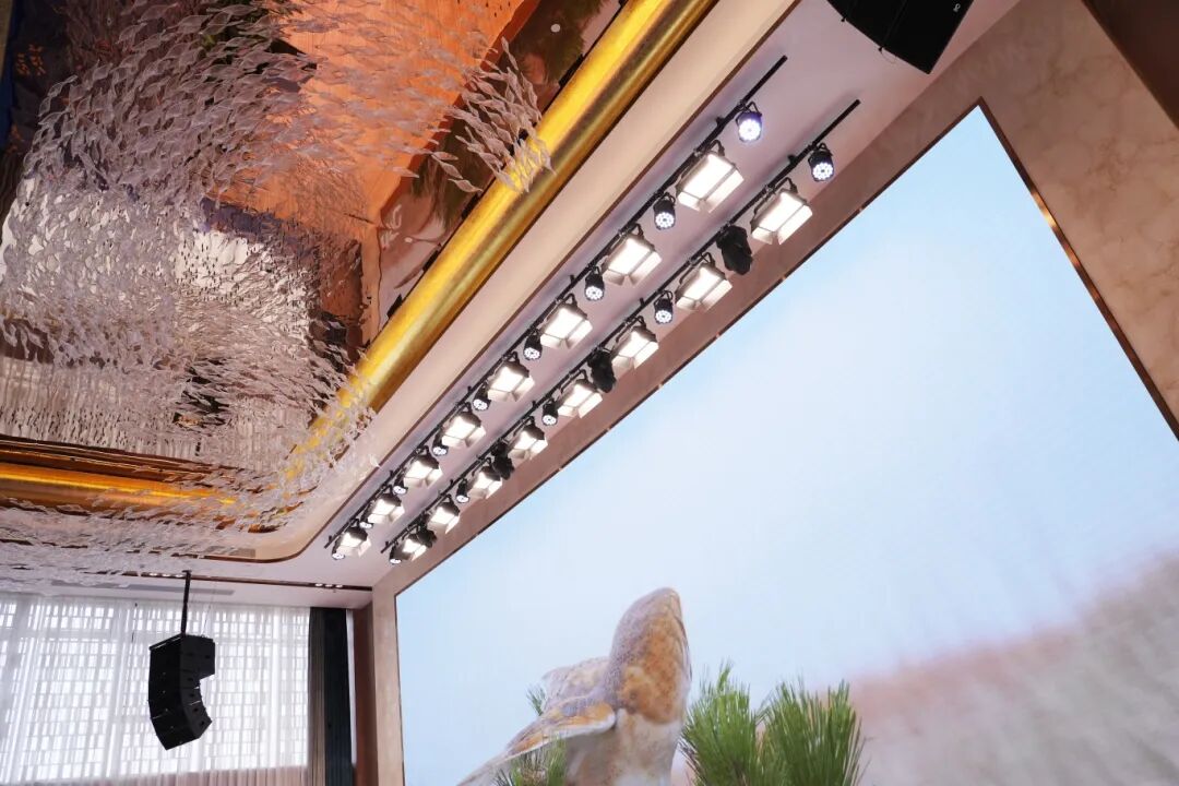 加中生物科技多功能会议厅场地面积较大,可容纳300余人,为了保证整个会场内充分的声压级,itc采用了2组线阵列全频音箱作为会场主扩声,分别吊挂于主席台两侧,对观众席实现精准的大面积声音投射,为会场提供高清晰度和高穿透力的声音覆盖。同时配备辅助、返听、台唇、超低频音箱,实现宽广区域的无死角覆盖,确保从台口到后排的每位观众都能获得均衡一致的声场体验。