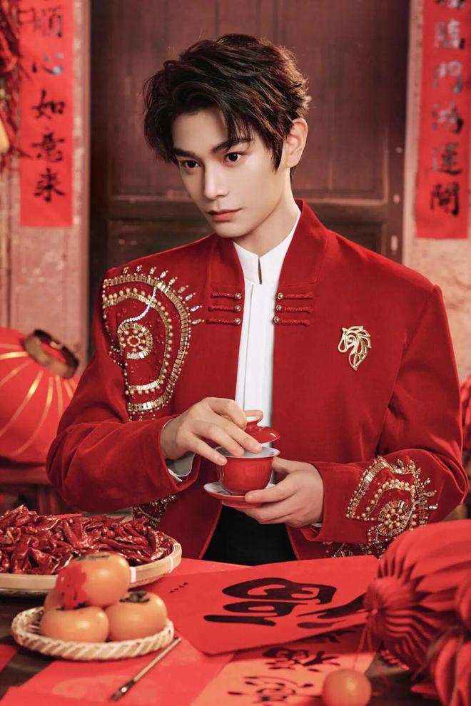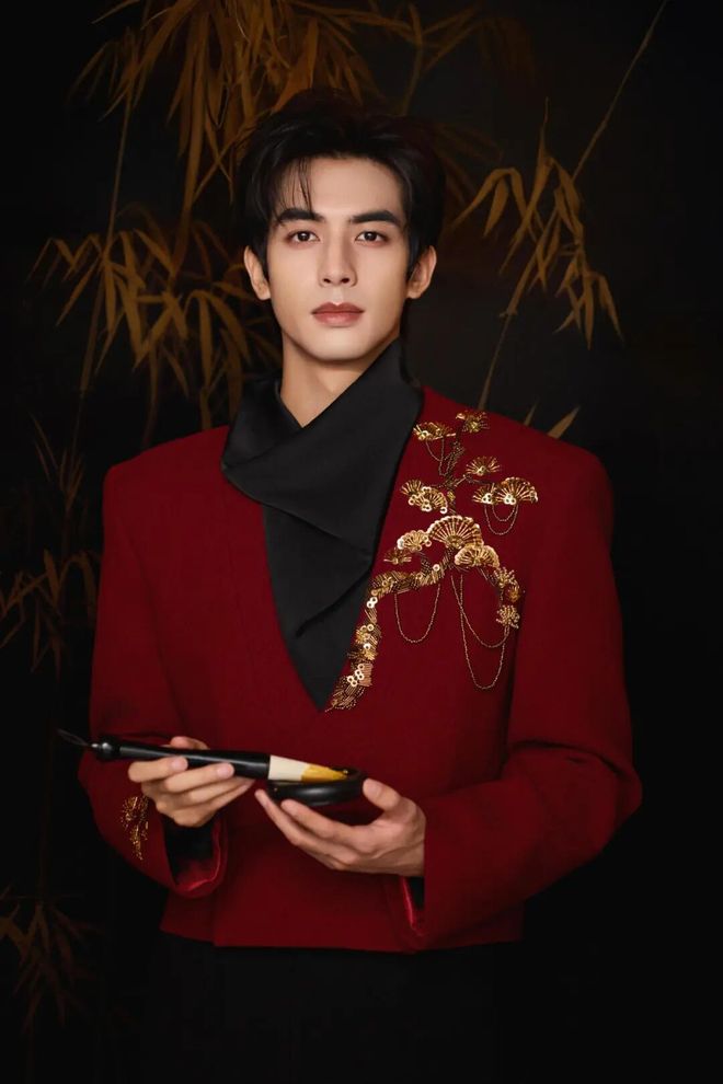 宋威龙在《串门指南》身着JUN BY YANGJUN红色新中式短款外套,哑光羊毛呢面料搭配苏绣苍松翠柏刺绣,内搭黑色高领,简约配色让刺绣成为焦点,尽显少年俊朗与东方儒雅。