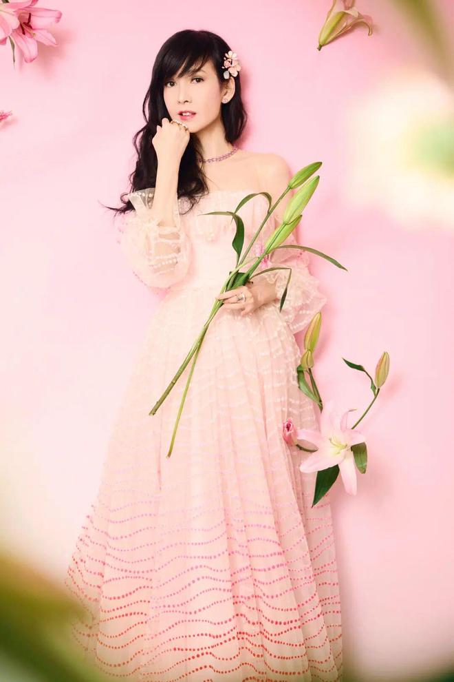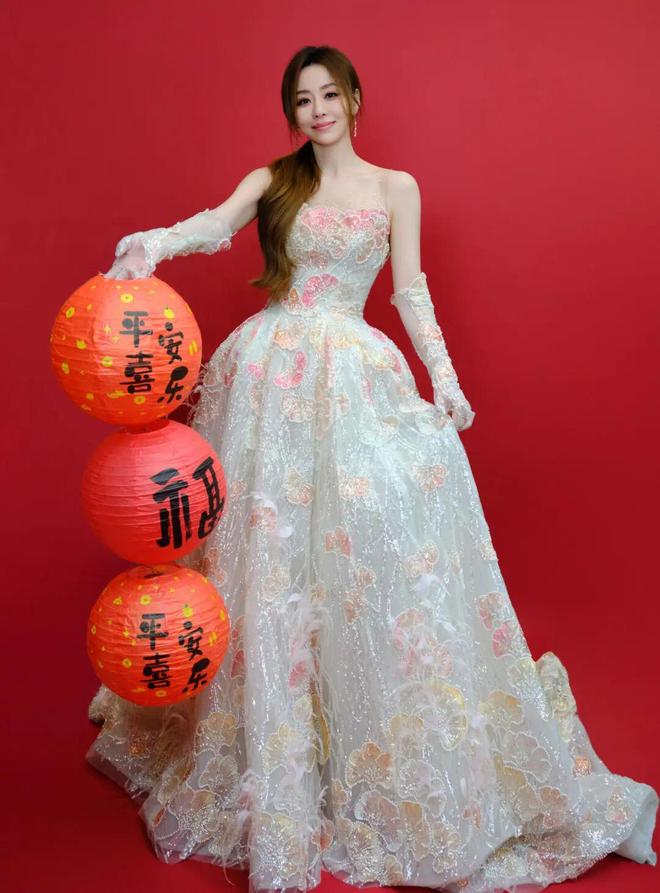 周慧敏同样在《立春》身着JENNY PACKHAM浅粉色蕾丝刺绣长裙,多层网纱设计增添朦胧美感。立体绣花卉遍布裙身,高领设计复古优雅,搭配标志性长卷发,宛如从画中走出的古典美人。