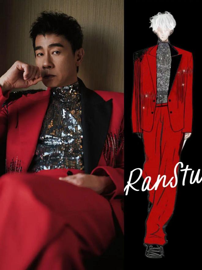 陈小春身着RuiRan Studio特别定制红色西装套装亮相,以“传统中国红+未来科技感”的先锋设计,打破大众对新年红装的固有认知,尽显硬汉柔情与潮流态度。