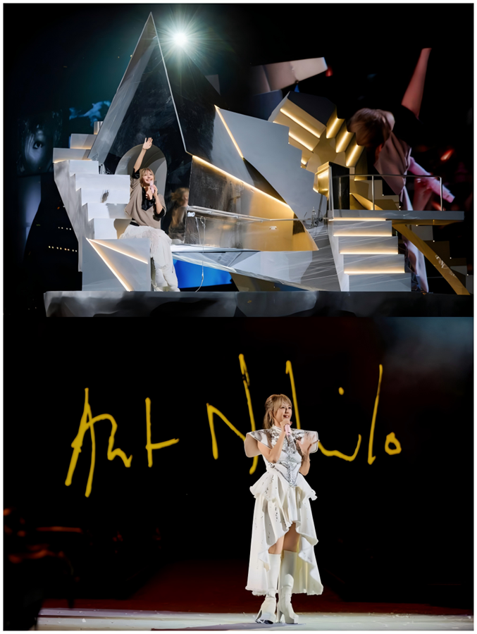 日晷,象征时间的流转与沉淀。孙燕姿站在由日晷组成的“漂浮群岛”上,日晷的晷针与刻度在灯光下投下流动的光影,仿佛记录着二十余年来她与歌迷共同走过的岁月,被粉丝称为“时间见证下的双向奔赴”。